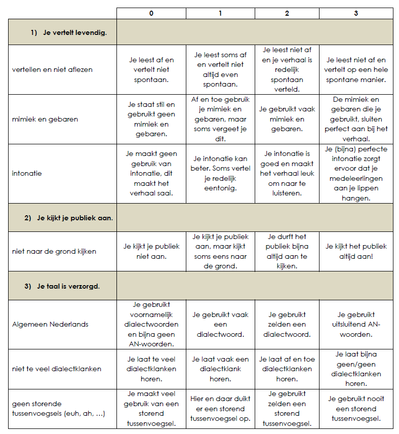 Op deze criteria zal je beoordeeld worden. Bekijk dit document goed vooraleer je je spreekoefening voorbrengt.
